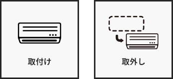 エアコンの型番や機能・サイズ・数問わず、ご購入されたエアコンの取付けを行います。既設エアコンの取外しや撤去処分もお任せください。