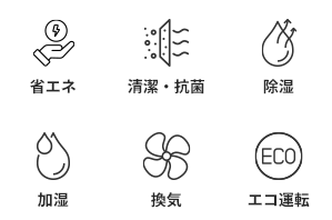 冷暖房効率がよく省エネ性が高いのはもちろん、清潔に使い続けられる機能や、除湿・加湿・換気などの機能が備わったもの。人感センサー付きでエコ運転が可能なものなど、さまざまです。